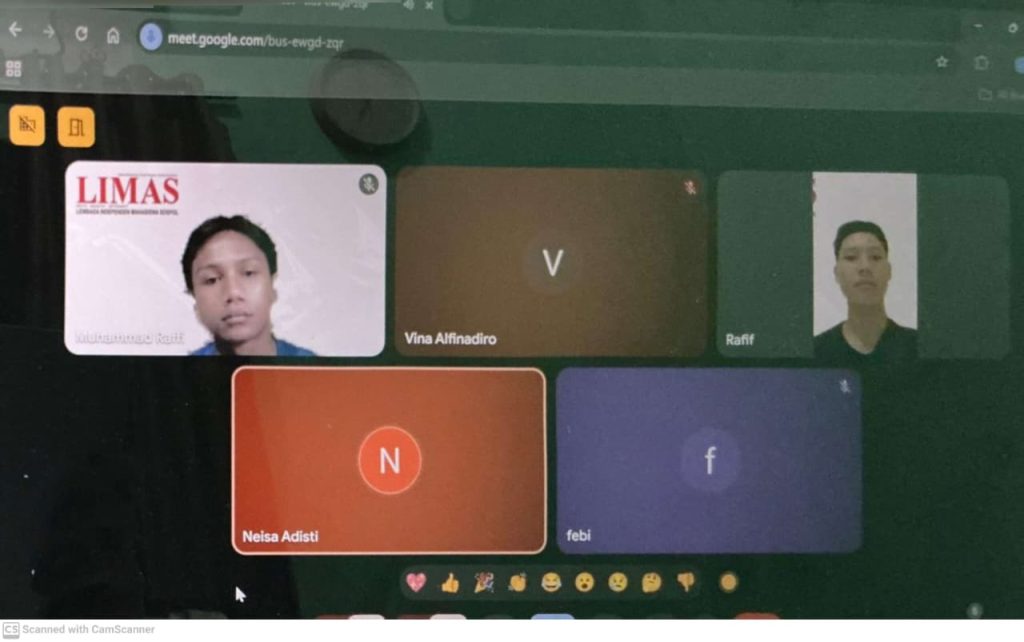 Tangkapan layar sesi wawancara daring Tim LPM Limas bersama Neisa Angrum Adisti, Ketua Satgas PPKPT Unsri, melalui google Meet pada Kamis (16/10).