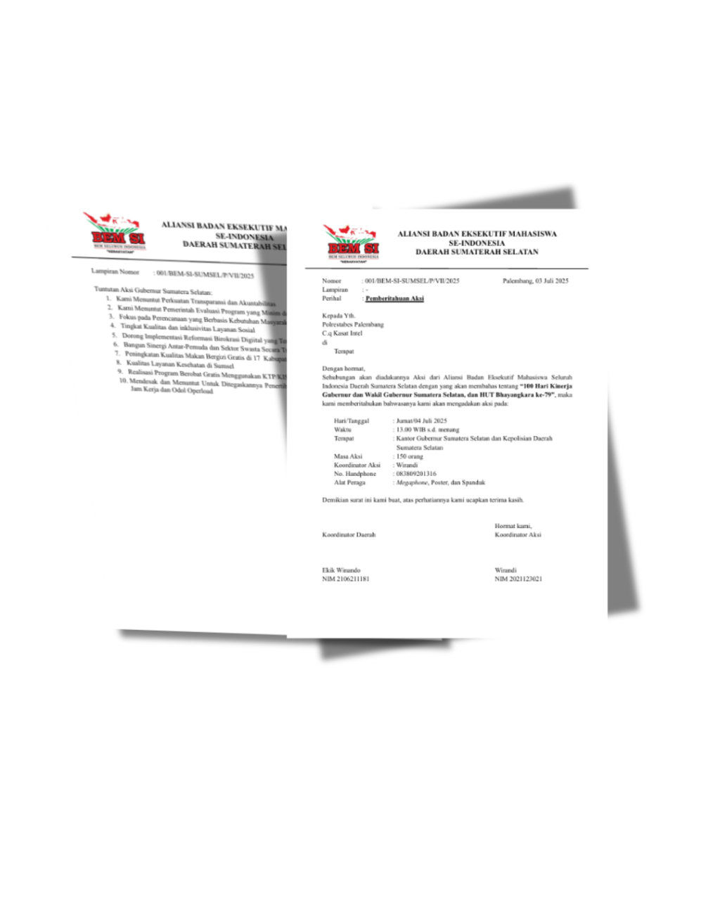 Surat Pemberitahuan Aksi dan Poin Tuntutan Aksi 100 hari Kinerja Gubernur dan Wakil Gubernur Sumsel